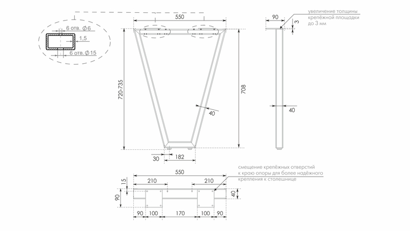 Мебельная опора для столов VECTOR N321W.1/720