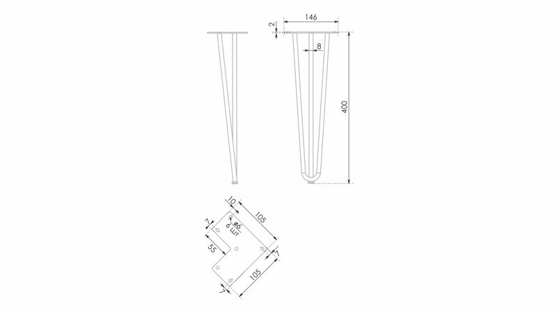 Мебельная опора для журнальных столиков ALFA N211W.2/400