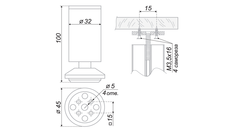 - Регулировка до 15 мм