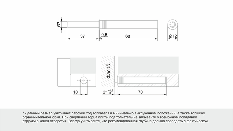 Толкатель Push-to-Open скрытого монтажа AMF14/W