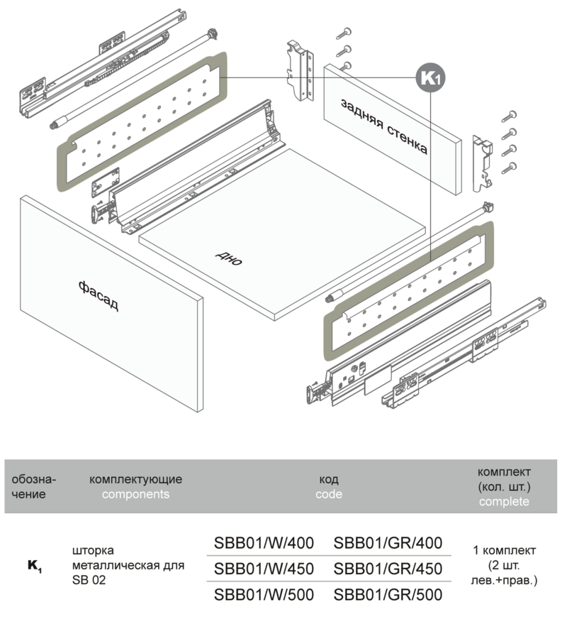Шторка металлическая SBB01/W/450
