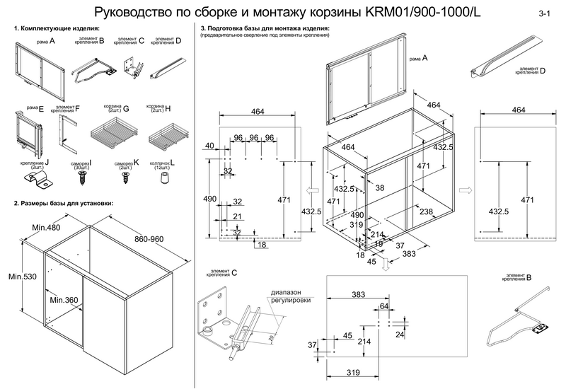 Выдвижная корзина KRM01/900-1000/L
