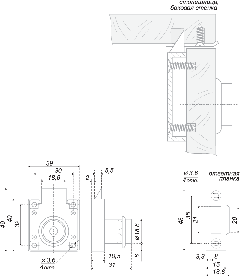 Мебельный замок Z348GP.1/22